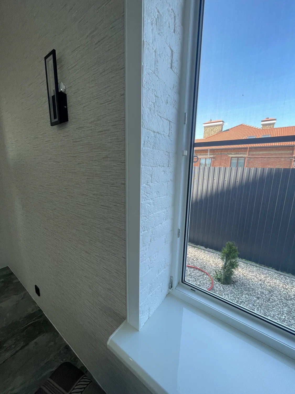 Декоративные откосы из гипсового камня и полиуретанового плинтуса.