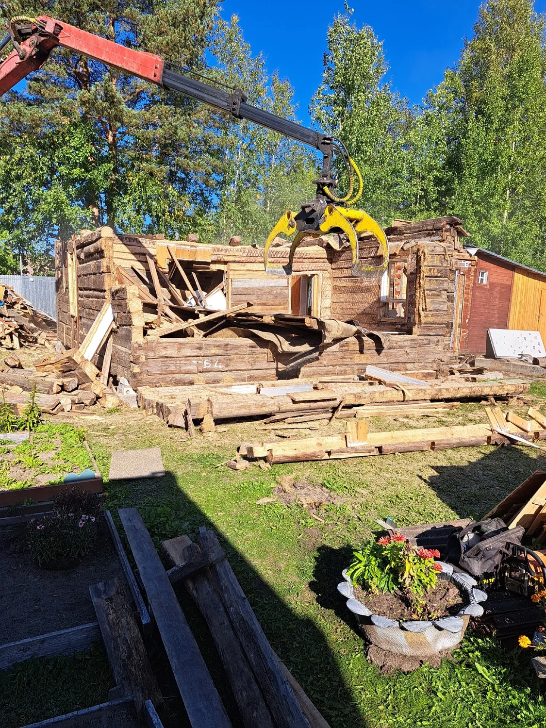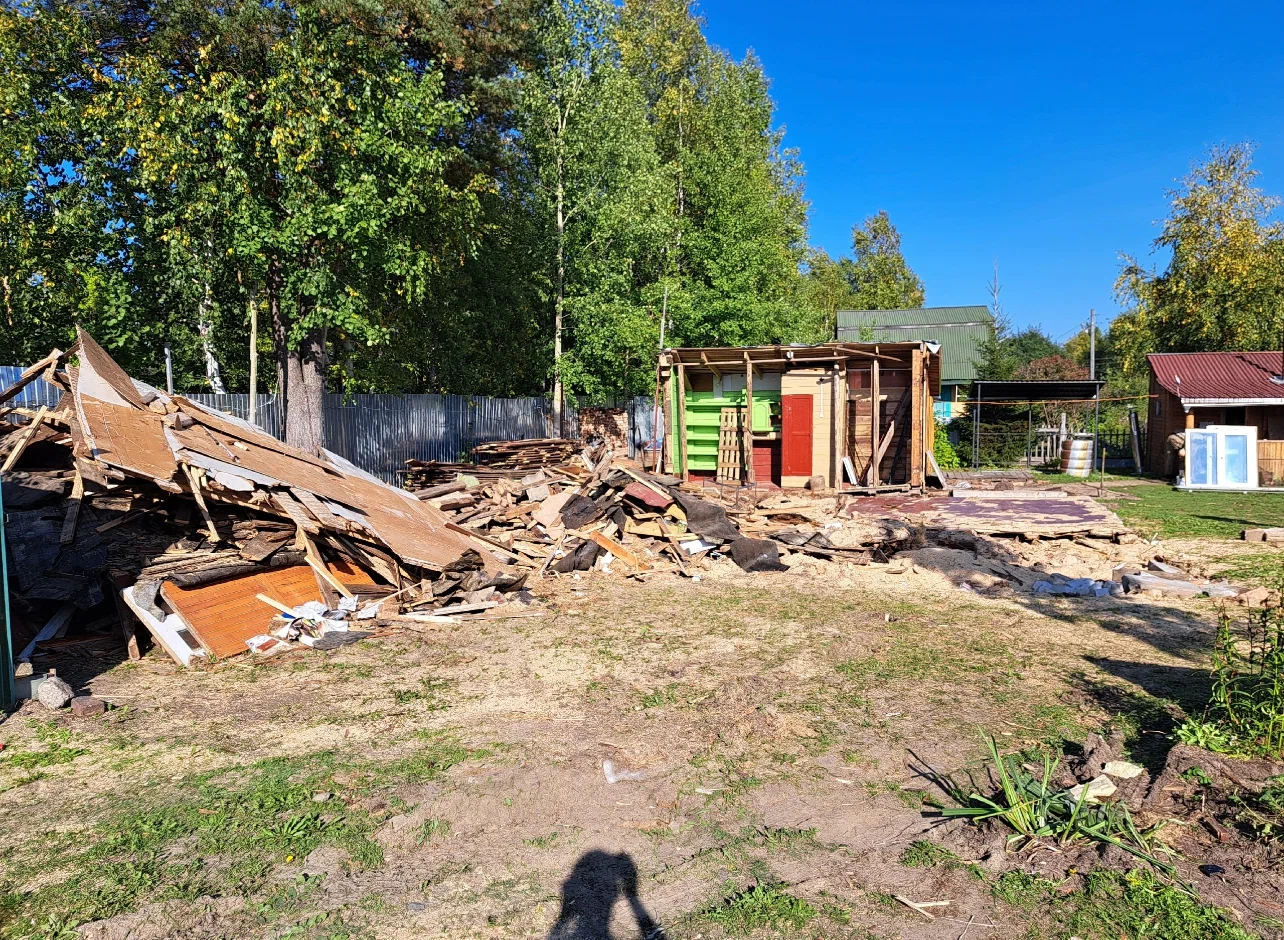 Осуществили демонтаж старого дачного дома с вывозом строительного мусора. Подготовили площадку для строительства нового каркасного дома.