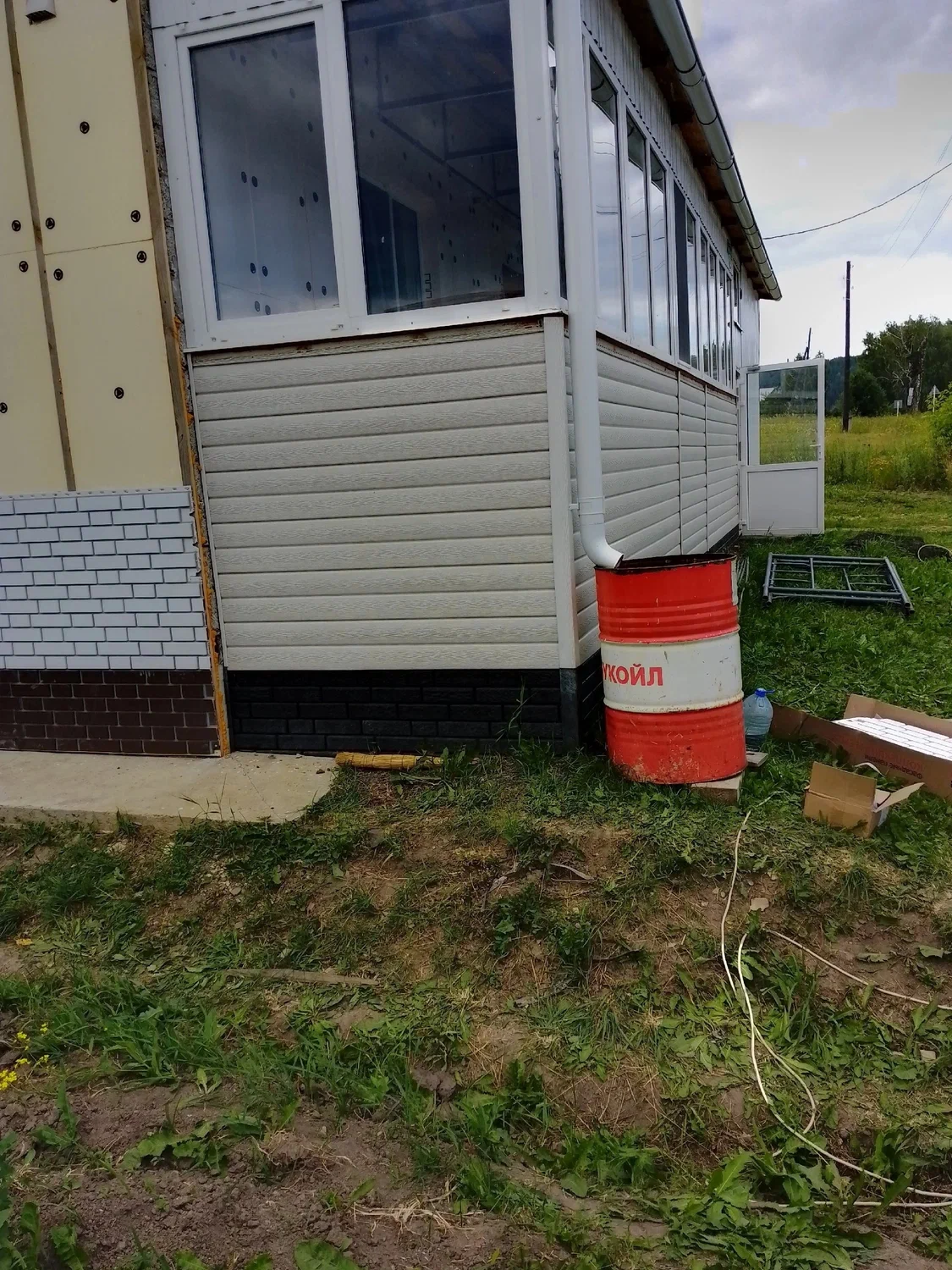 На реконструкции дома произвели отделку фасадными панелями. Пристрой, по желанию заказчика, обшили виниловым сайдингом в бежевом цвете