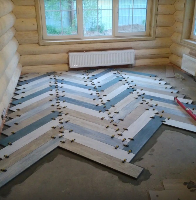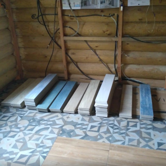 Грунтовка пола, Укладка керамогранита на пол, Затирка швов.