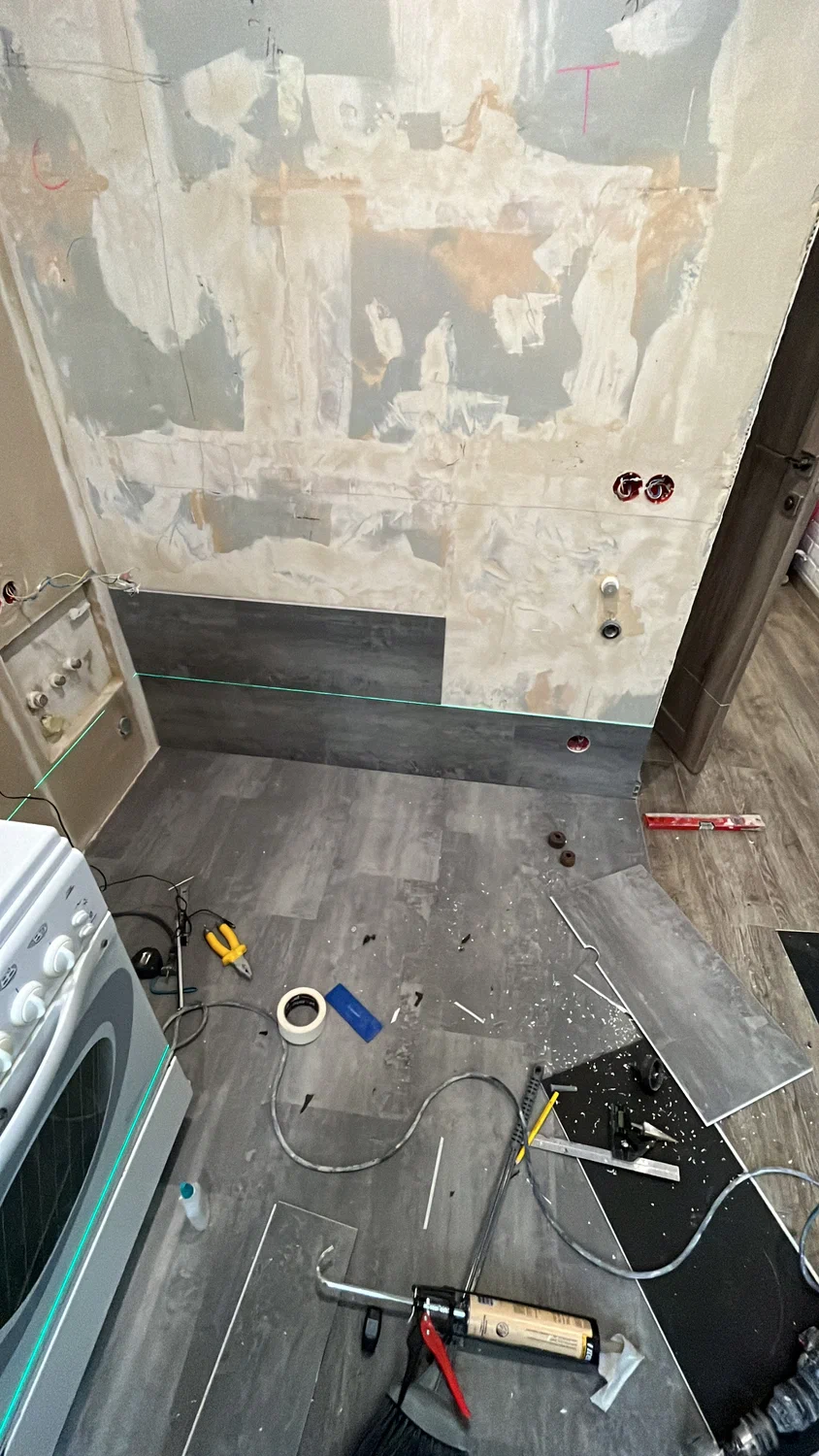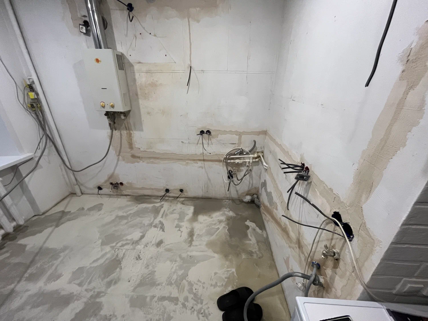 Выполнены штукатурные работы для формирования угла 90 градусов при заказанной кухни уже в размер чернового помещения. Произвели заливку наливного пола. Распаяли подачу водоснабжения и развел водоотведение. Все поставленные задачи и желания выполнены.