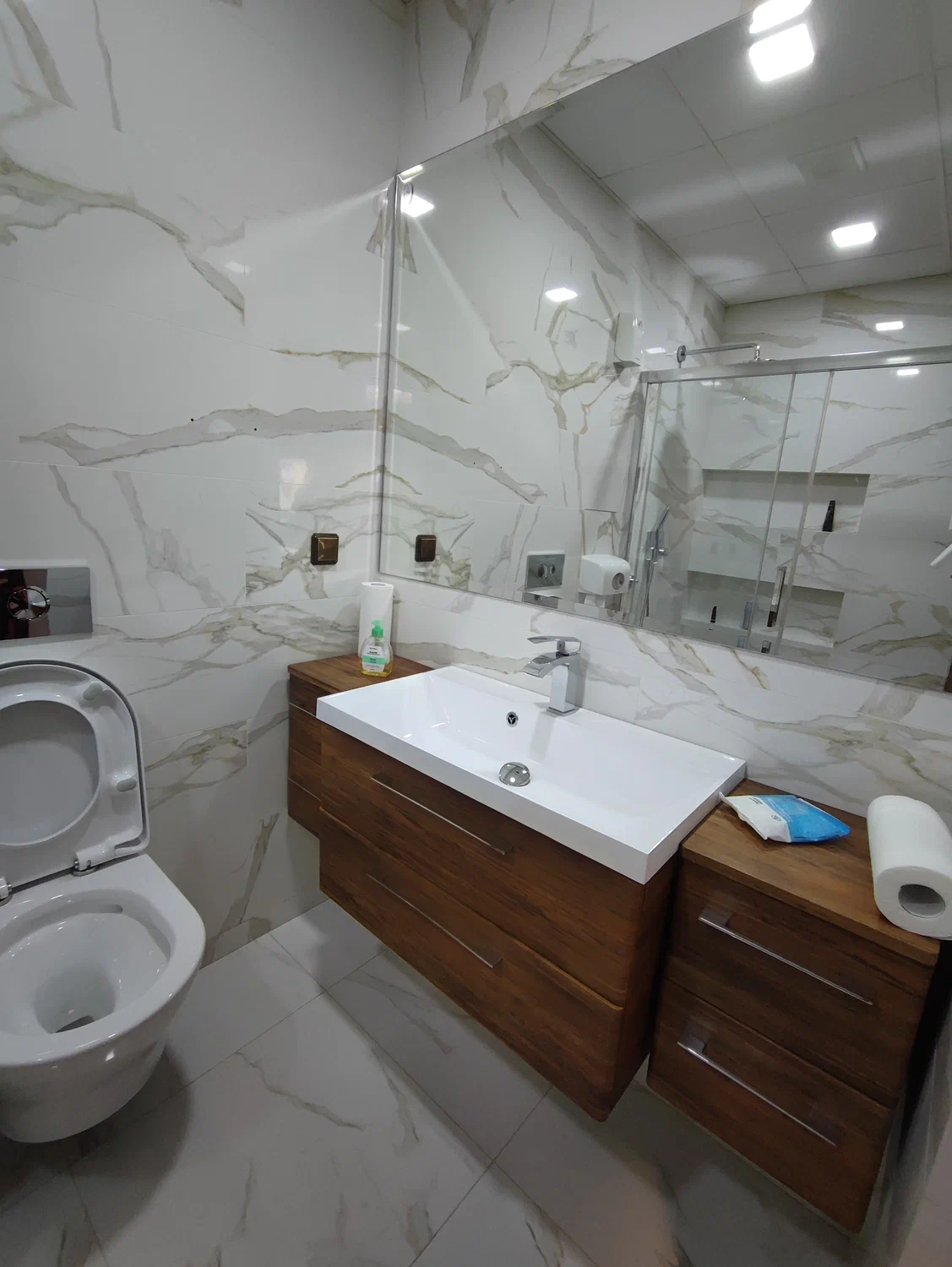 Монтаж душевой перегородки, смесителя, унитаза, умывальника.