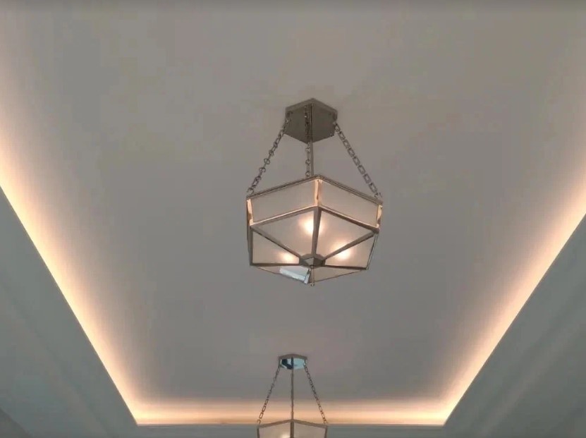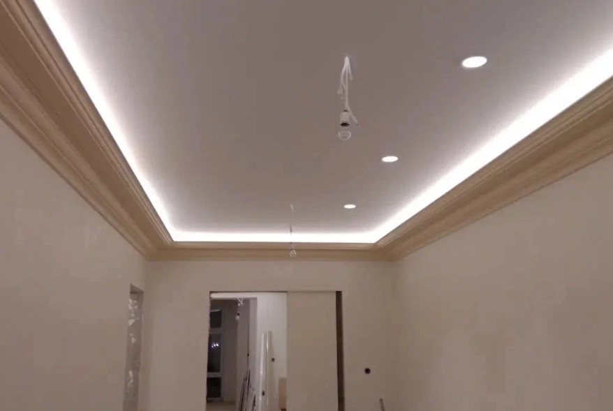 Монтаж одноуровнего каркаса Кнауф, монтаж ГКЛ, грунтовка, поклейка ленты Кнауф, поклейка стеклохолста на стены и потолок, шпаклевка, шлифовка, монтаж карнизов и потолочных плинтусов из полеуретана.