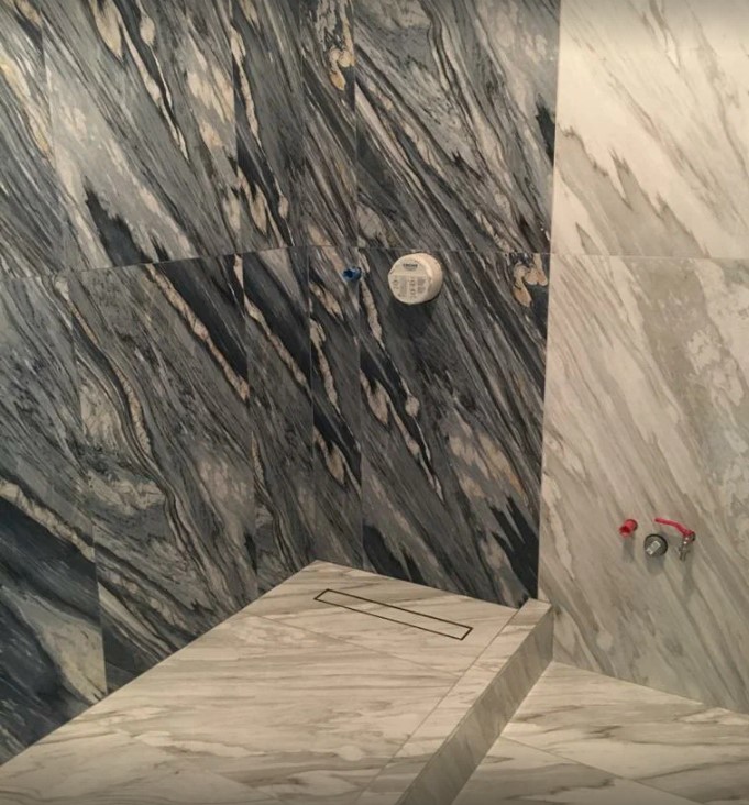 Укладка керамогранита на пол и стены, из крупноформатного керамогранита 1200 *600 мм