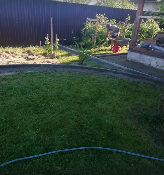 В первую очередь участок очищаем от мусора, многолетних сорняков, камней, пней и кустов. Каждый следующий ряд укладывали по принципу кирпичной кладки, то есть со смещением на полрулона. Это позволит покрытию более равномерно приняться.