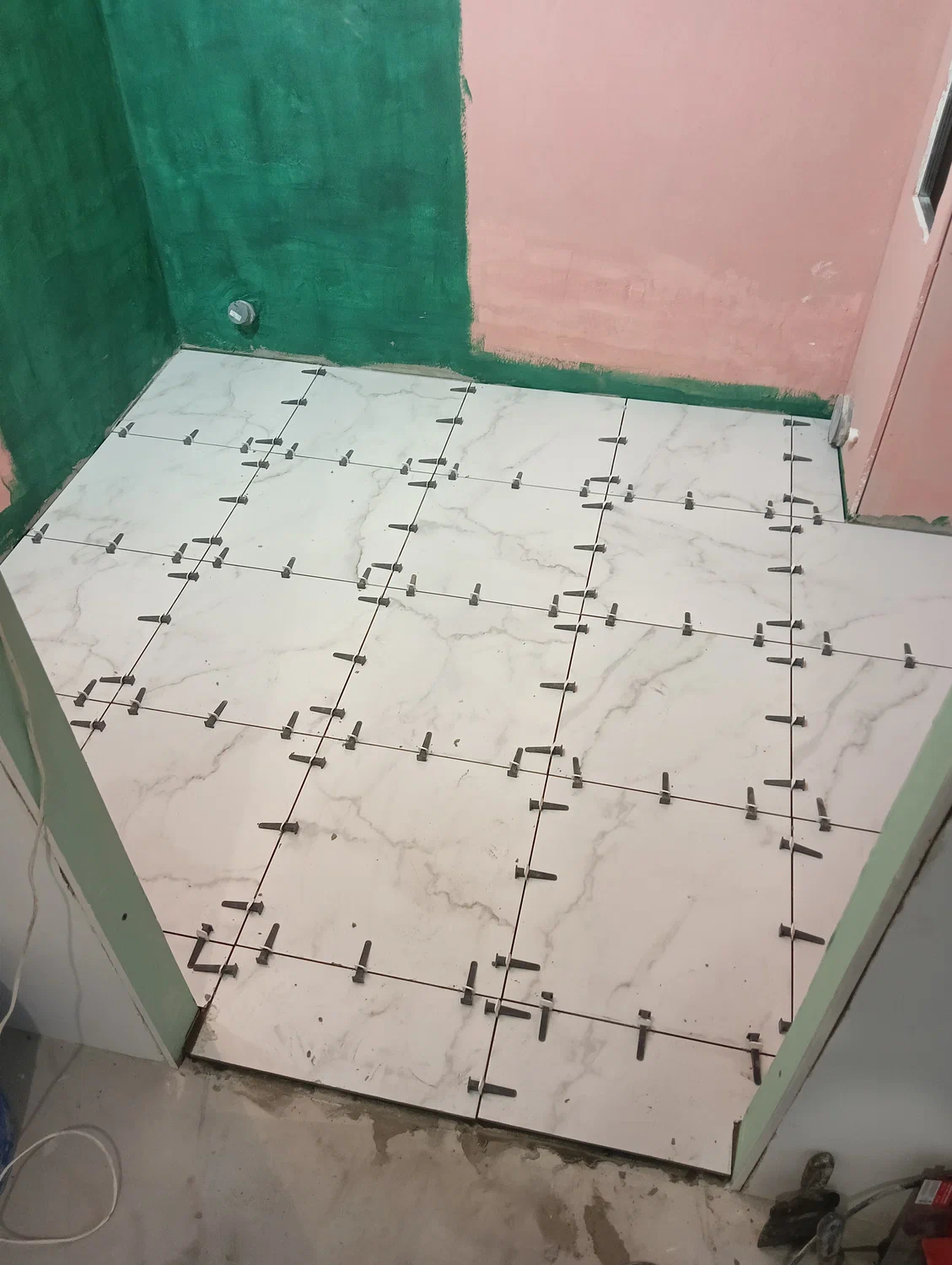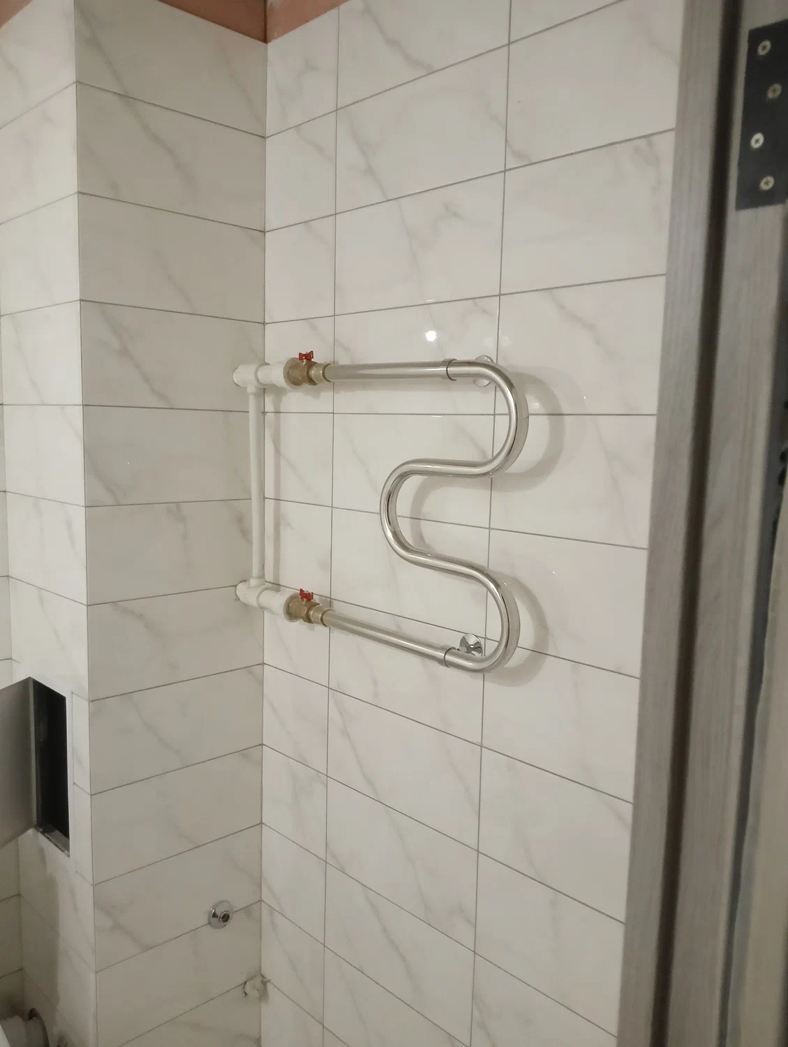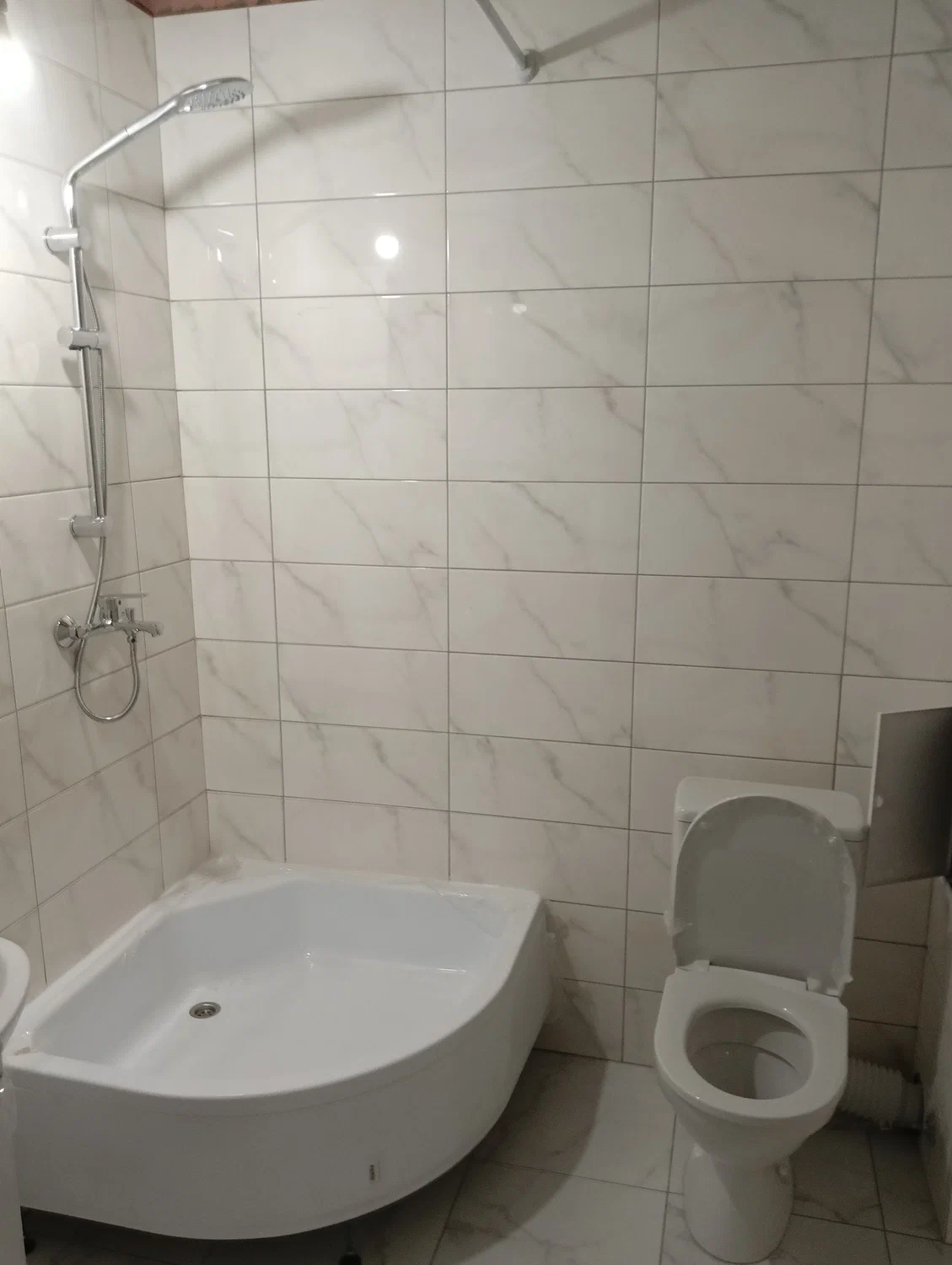 Выполнены следующие работы: штробление стен под воду и канализацию, разводка воды и канализации, заделка штроб, монтаж короба, грунтовка, нанесение бетонконтакта и гидроизоляции, укладка плитки, затирка швов, установка сантехники.