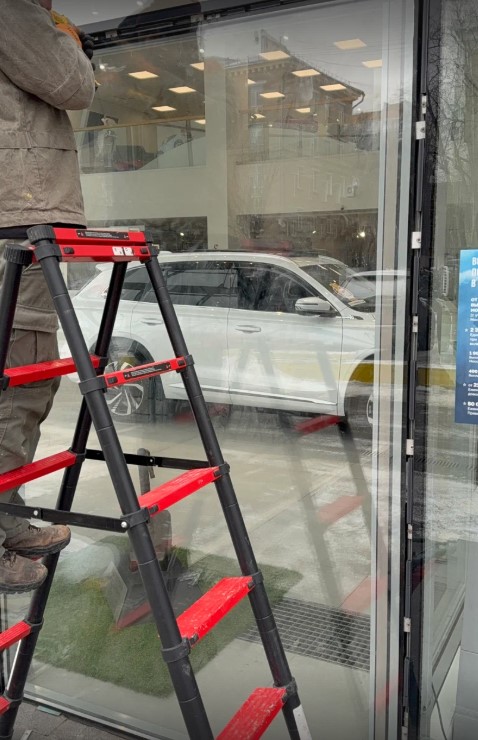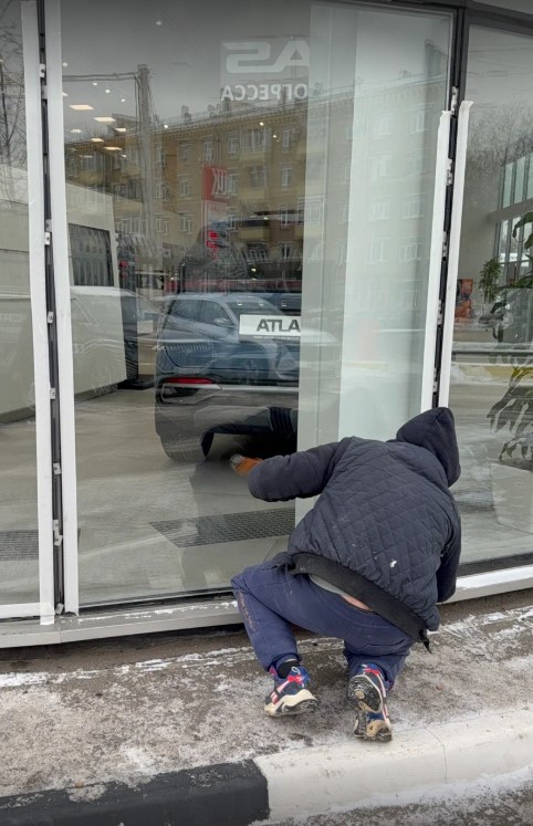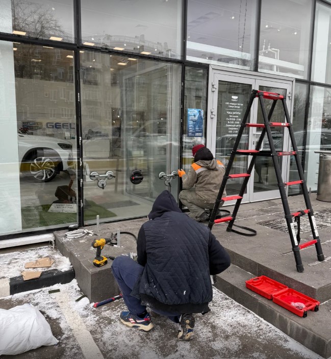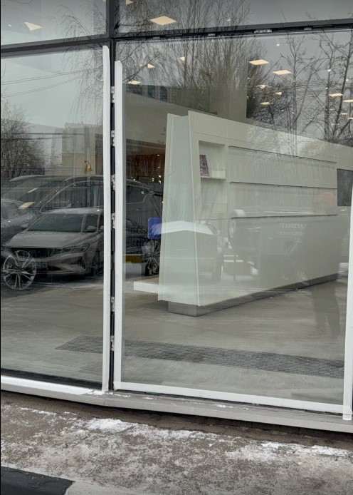Были произведены работы по замене стеклопакетов в структурном остеклении автосалона.